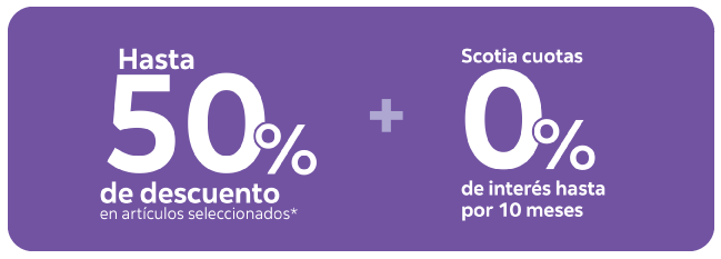 ®Marca registrada de The Bank of Nova Scotia, utilizada bajo licencia. Ver reglamento del programa Scotia Cuotas 0% interés en scotiabankcr.com. Aplican restricciones: *El descuento de hasta 50% de descuento en artículos seleccionados es otorgado directamente por Tiendas Universal, el beneficio aplica al pagar al contado con la tarjeta de Scotiabank, en canje de Scotia Cuotas 0% de Interés. Scotiabank participa únicamente como medio de pago, por lo que no se hace responsable por los bienes y/o servicios adquiridos, cualquier reclamo debe verlo directamente con Tiendas Universal.